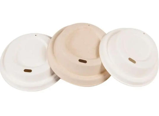 - Hot drink cup lids: Bagasse or molded fiber lids with sip holes fitted to standard paper cups in cafés and coffee chains.[11][9]
